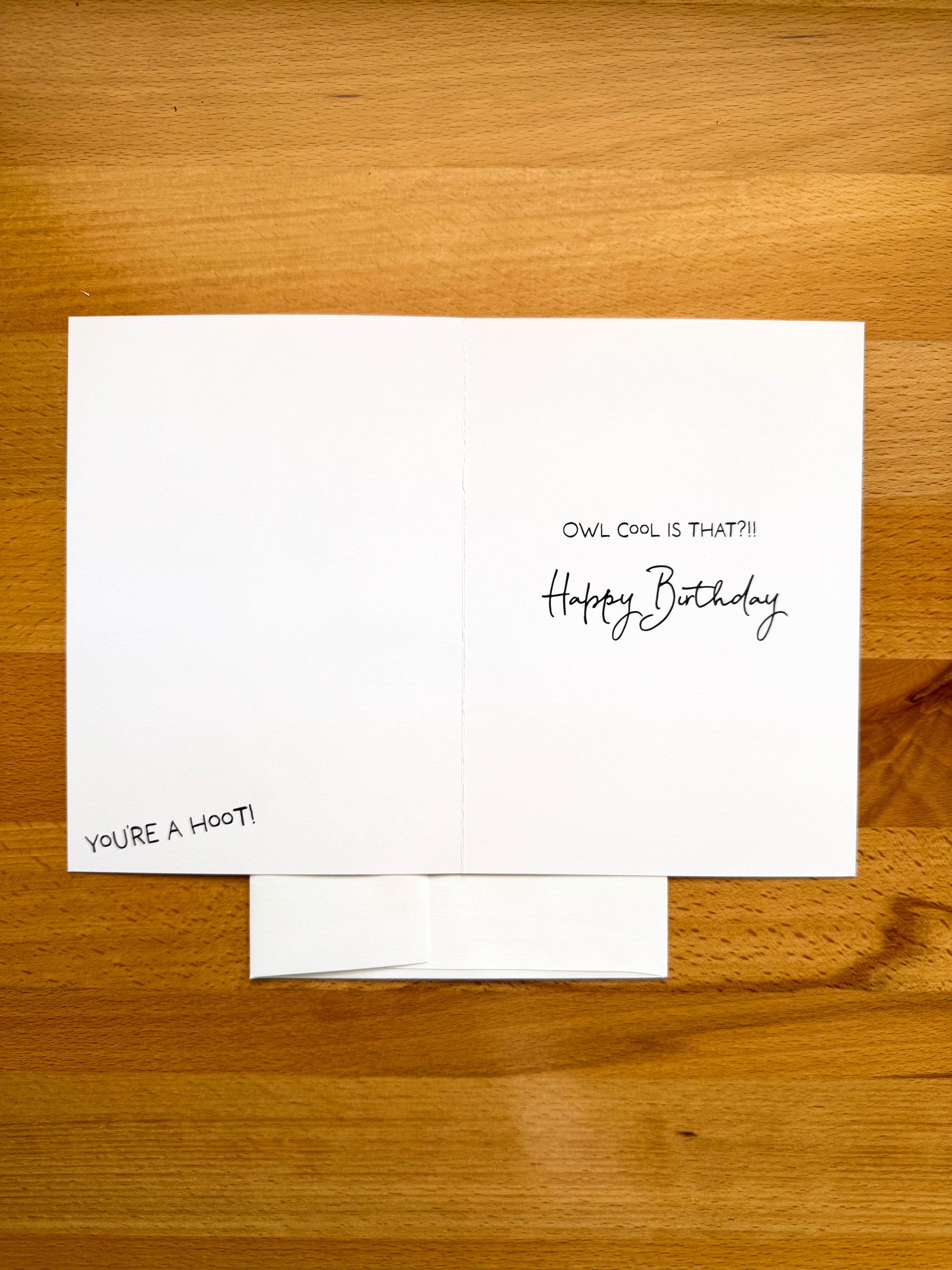Inside card reads 'Owl cool is that?!!'